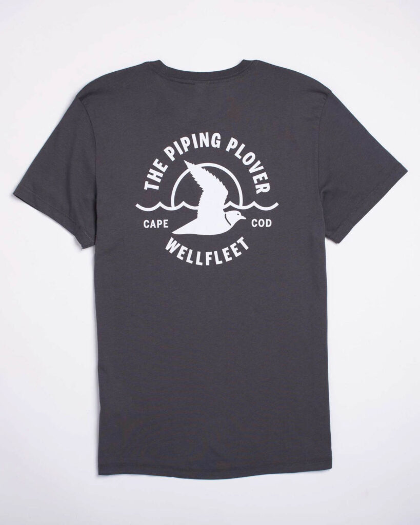 Super comfy, soft lightweight white t-shirt featuring the Piping Plover logo in green...